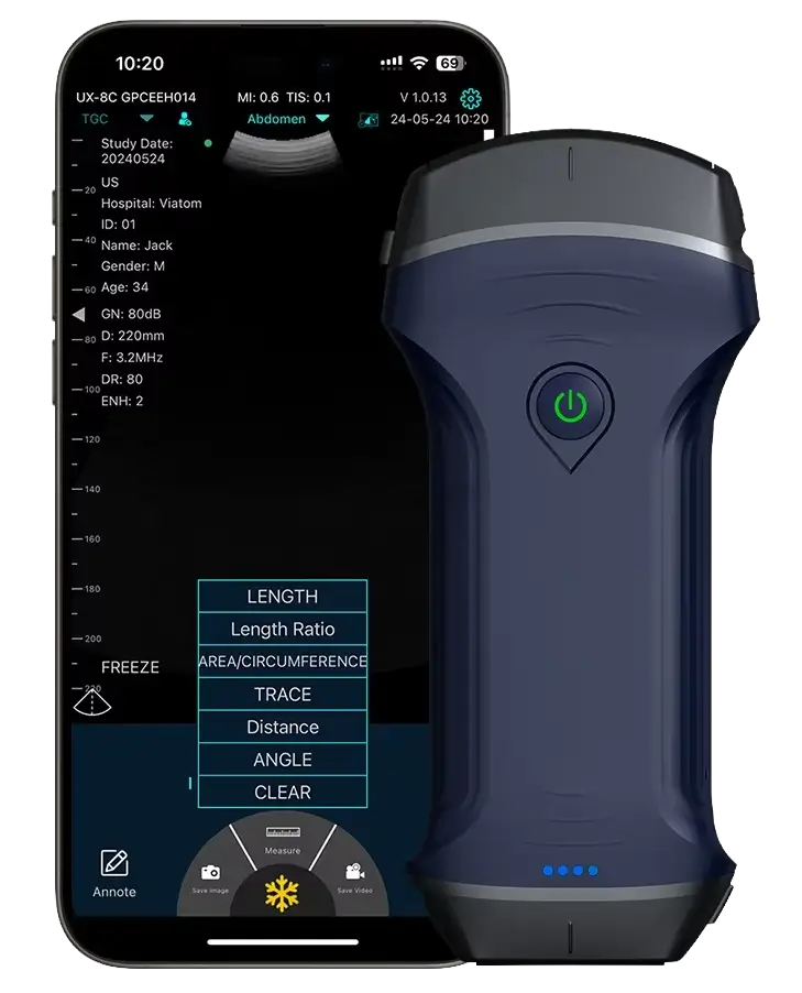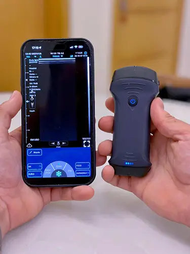 Imagine ter o poder de um ultrassom completo, do tamanho de um celular, que você leva no bolso do jaleco, conecta via Wi-Fi ao seu celular, tablet ou notebook, e em segundos está fazendo diagnósticos e procedimentos com total precisão.